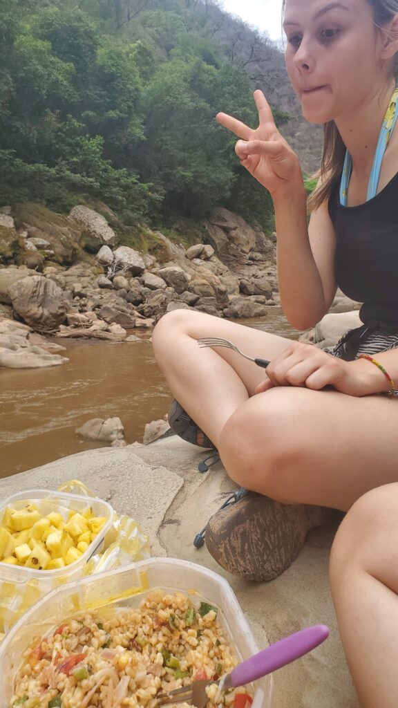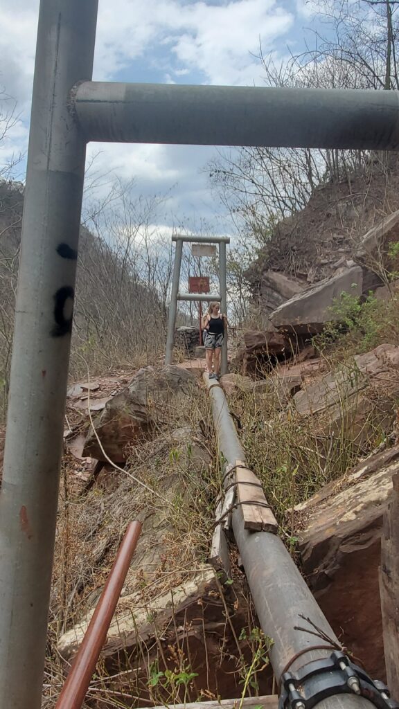 Ein bisschen erzählen kann ich natürlich trotzdem was. Wir sind nämlich endlich zu „El Chorro“ gewandert. Es war vor allem für unsere WG sehr bedeutend, weil wir darüber schon vor der Bolivienausreise immer wieder geredet haben. Es war also endlich soweit und wir sind zum Chorro gewandert, einer heißen Quelle die direkt aus dem Berg entspringt. Das Wasser kommt von tief aus dem Berg, wo es durch thermische Aktivitäten aufgewärmt wird. Die Wanderung dorthin war wirklich toll, es ging durch Höhlen, über nicht gerade sichere Brücken und das alles am schönen Rio Parapeti entlang. Die heiße Quelle führte in ein Becken, in dem wir auch Baden gegangen sind. Und es war erstaunlicherweise richtig heiß.  Dadurch das die Temperatur an dem Tag auch nicht gerade kalt war, konnte man es in der Quelle nur ein paar Minuten aushalten, bevor einem schwindelig wurde. Außerdem hat es etwas modrig gerochen. Aber alles in allem eine echt schöne Wanderung, die wir bestimmt noch einmal machen werden.